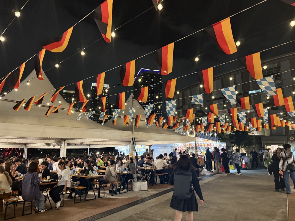 ららぽーと豊洲の敷地内で開催されていたオクトーバーフェストに参加しました🇩🇪華金だったこともあり、会場は大勢で賑わっていました🍻なんと今回は開催時間ギリギリまで人数が増え、6名×3グループで語りながらビールを堪能🙌🏻グループもシャッフルしたのでたくさんの交流が生まれました🤭夜景も綺麗で心地いい時間を過ごせました🌟
