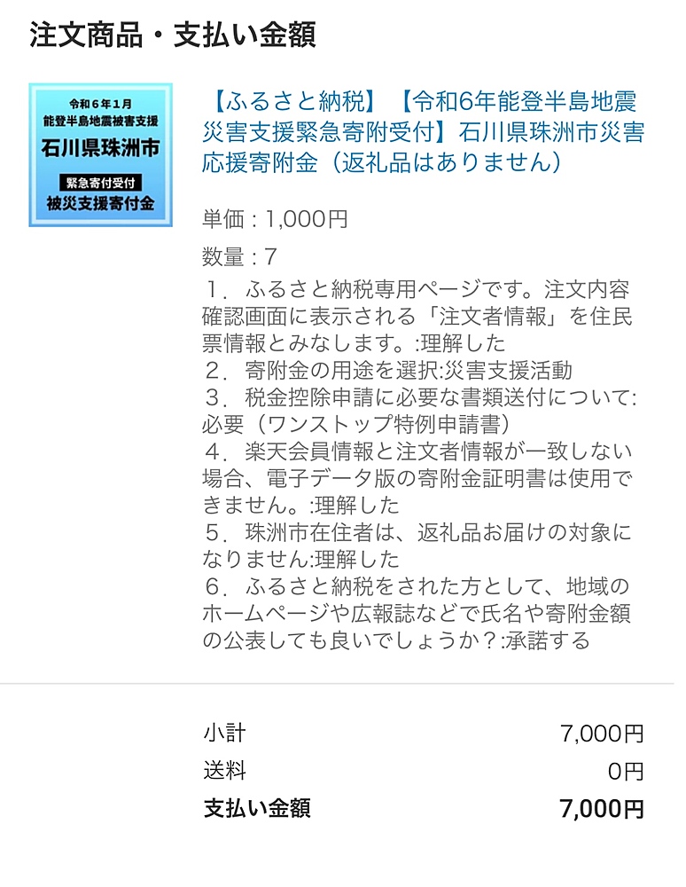 先日のイベントで発生した収益金について、楽天ふるさと納税を通じて、石川県珠洲市に7,000円を寄付いたしました💰🙏復興祈願🙏