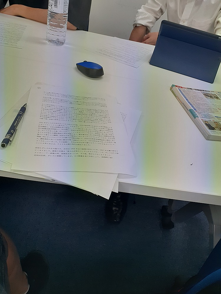 後半は戦後の日本独立として、当時の時代背景や吉田茂、ダレス、池田勇人、マッカーサーに人物を絞り、交渉のやりとりを説明しました。