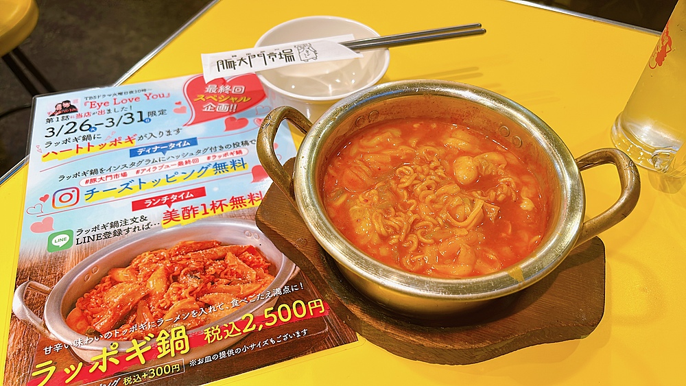 4/7(日)にもイベント開催しますが、一足先に、ドラマEye Love youのロケ地である、1話でテオくんが侑里におすすめした、ラッポッキのお店の豚大門市場さんへ行ってきました〜!