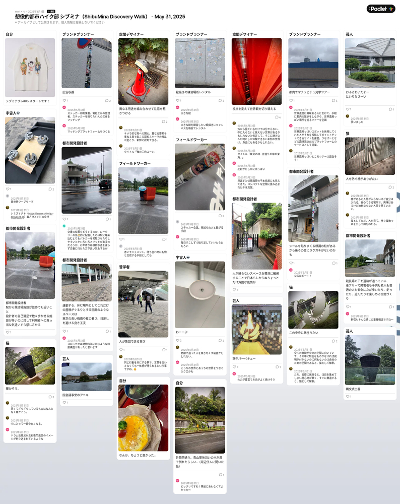 今回の経験を通じて、シブミナの「街を歩きながら発見を共有する」というスタイルが、天候や環境によっては大きな制約を受けることを改めて実感しました。今後は、雨天時の開催についても慎重に検討し、参加者の皆さんに安心して楽しんでいただける場づくりを心がけたいと思います。