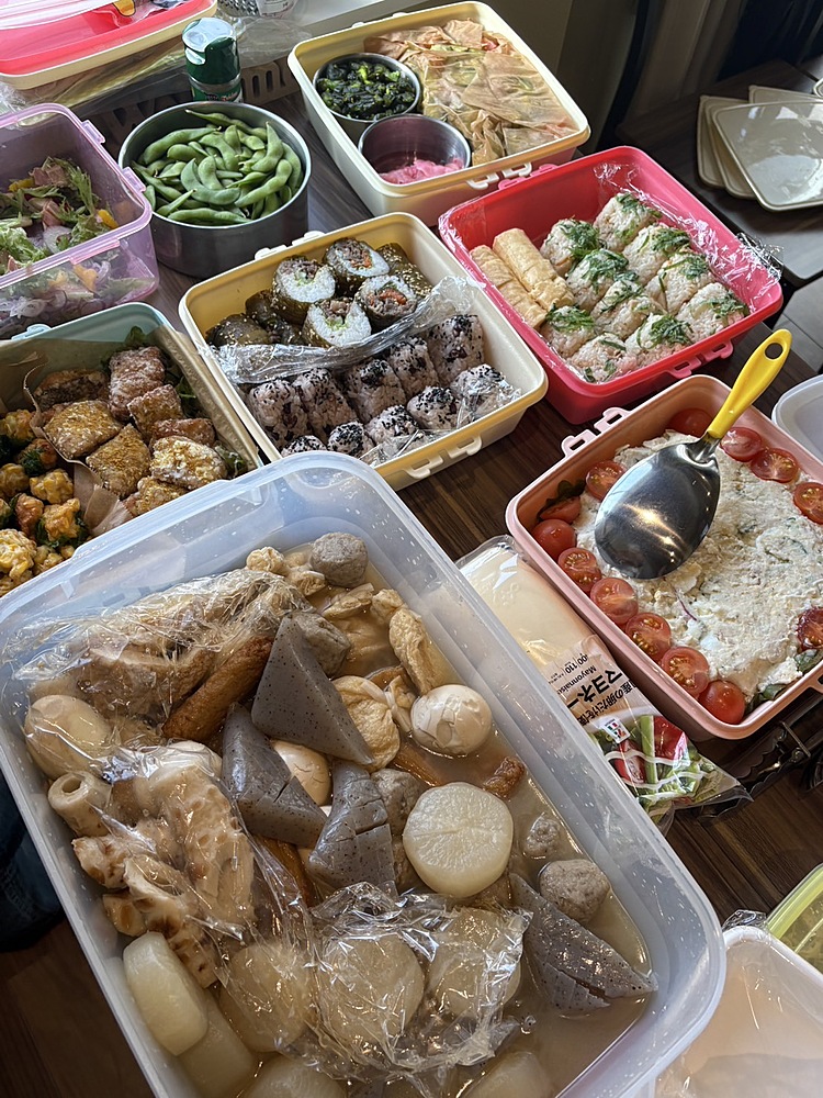 簡単に軽く手抜き食材使い10人分。今回はデザートにスコップケーキ(生クリーム)も作りました。