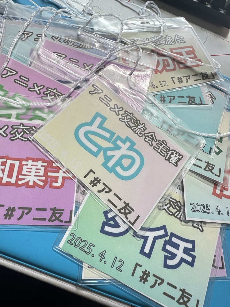 僕が主催するアニメ交流会では、当日皆さんにネームプレートを作成しています!