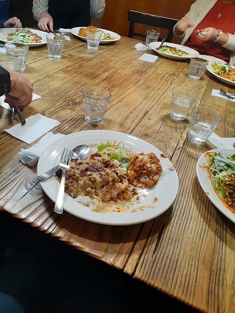 ④昼食、バーボン:予約していたから入れましたが、代官通りの老舗の洋食屋バーボンへ入りました。先週はカレーでしたが、主催者が同じ昼食会場は飽きる?という理由から今回は、ここにしました。写真はオリジナルライスですが、どこかにありそうであまりない洋食でお腹いっぱい。少し違うメニューもシェアさせていただきました。
