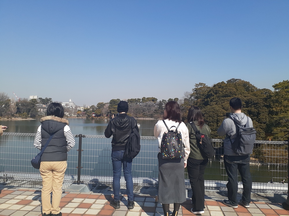 ↑展望台に皆で登り、洗足池を上から眺めました。