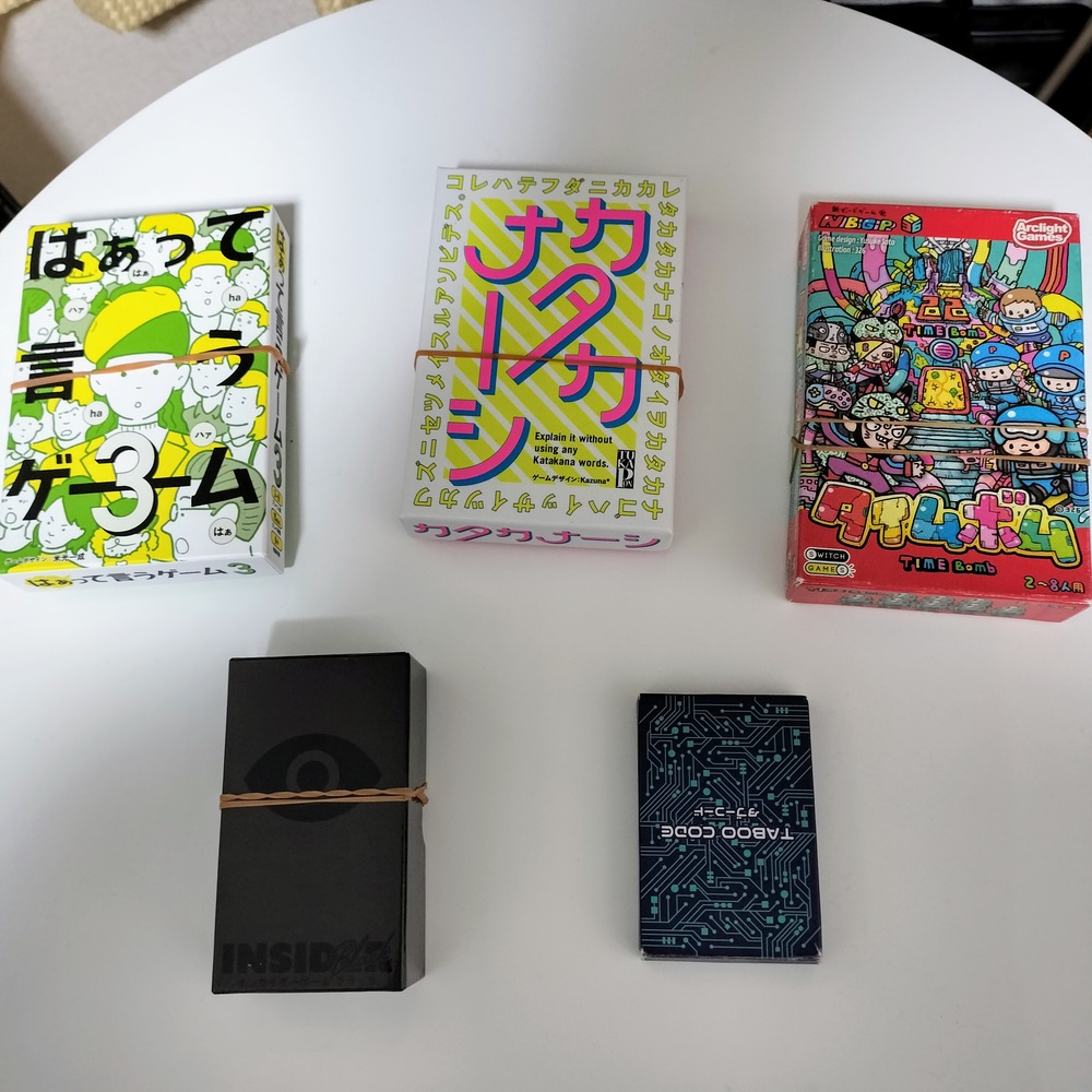 今回はタブーコード、はぁって言うゲーム、タイムボム、カタカナーシ、インサイダーゲームと定番ゲームを中心にワード系、心理系、演技系、お話系といろんなゲームををみんなで楽しみました😁
