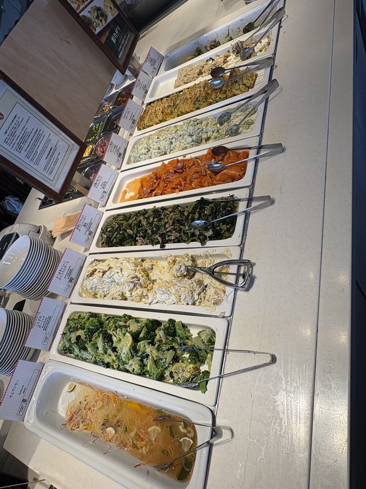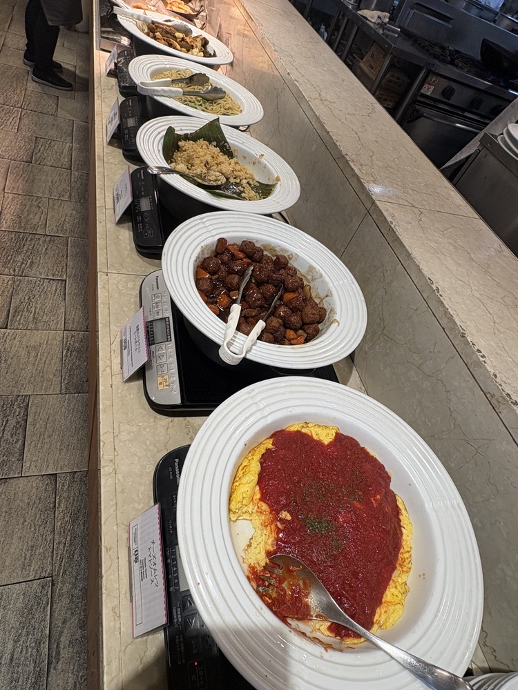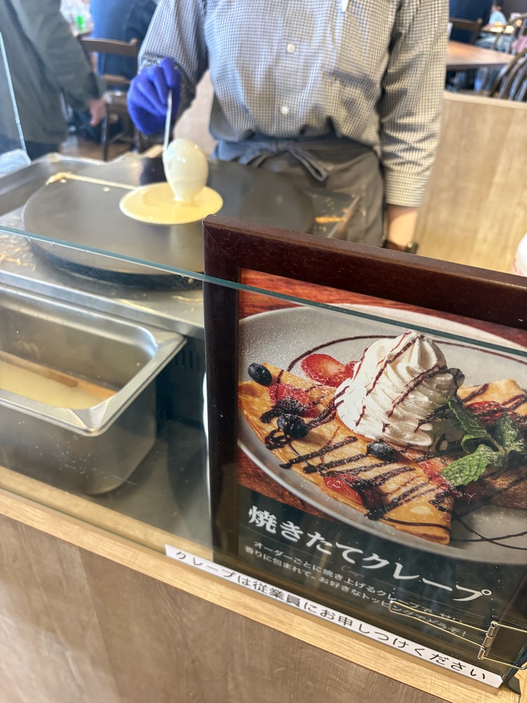 ソラマチにあるランチブッフェへ15分待ちで入れました!和洋中のお料理、ソフトドリンク、目の前でクレープを焼いてもらえます🥰