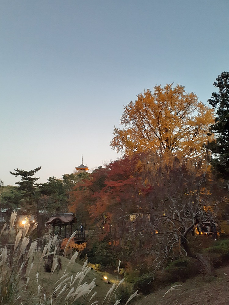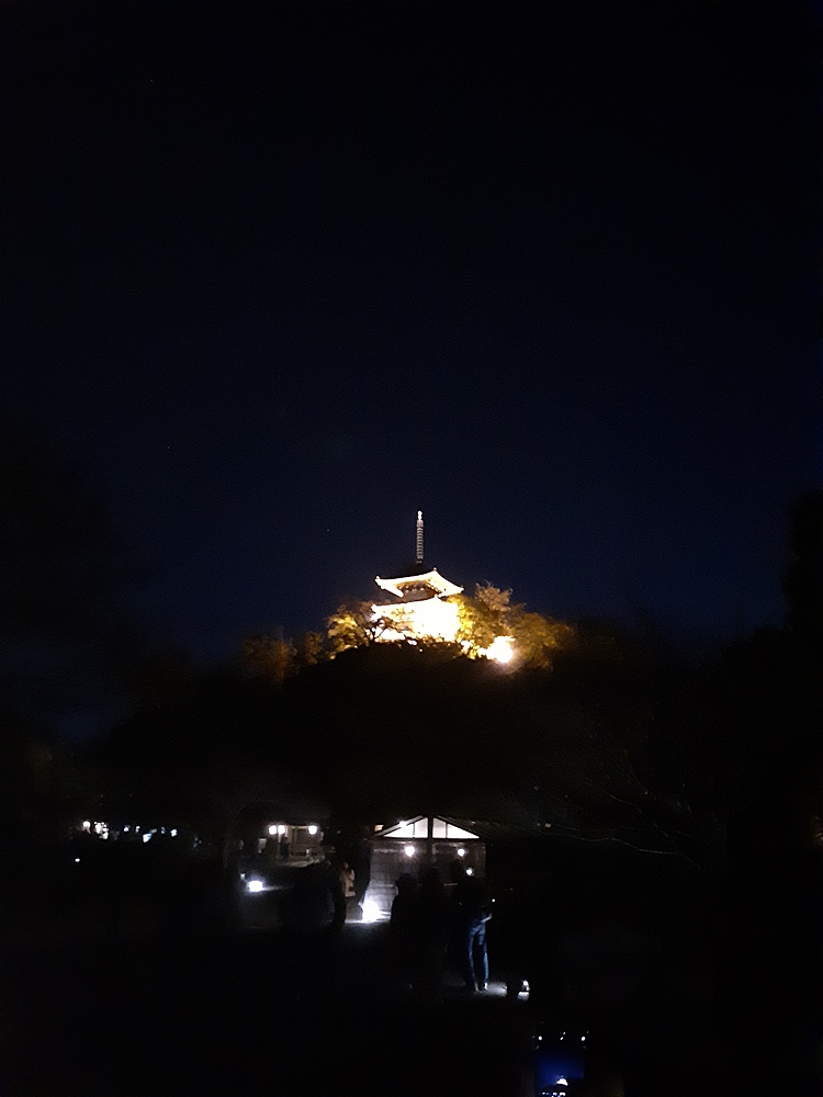 最後に、夜の三重塔を写真に納め、終了です
