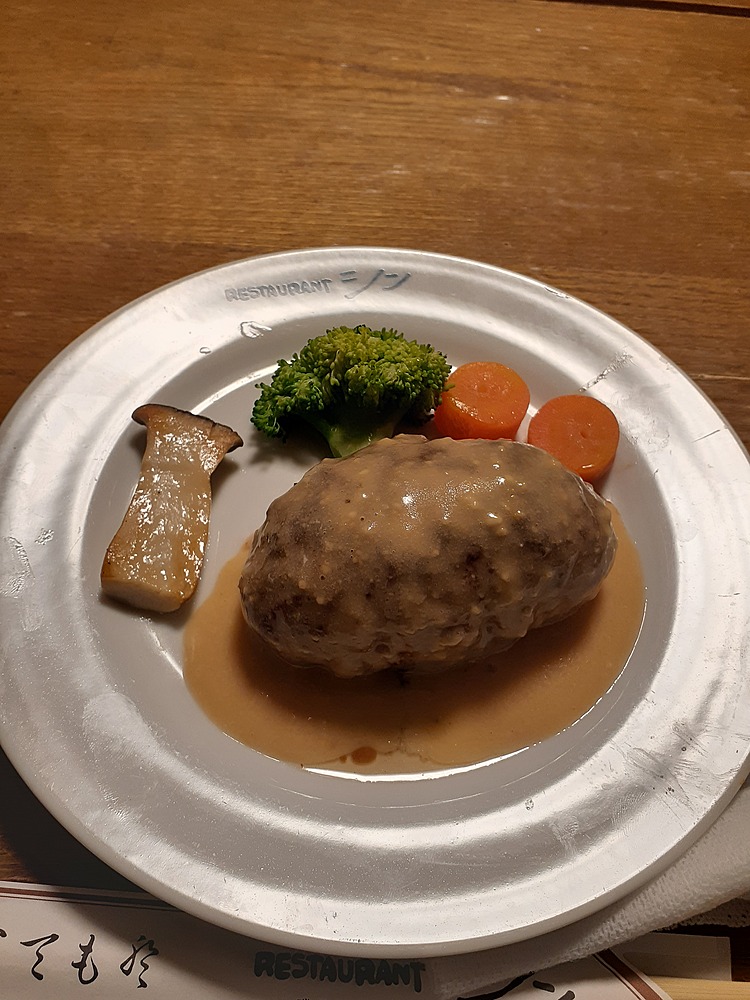 ③昼食は地元のレストラン シンで評判の日本風ハンバーグを食べました。