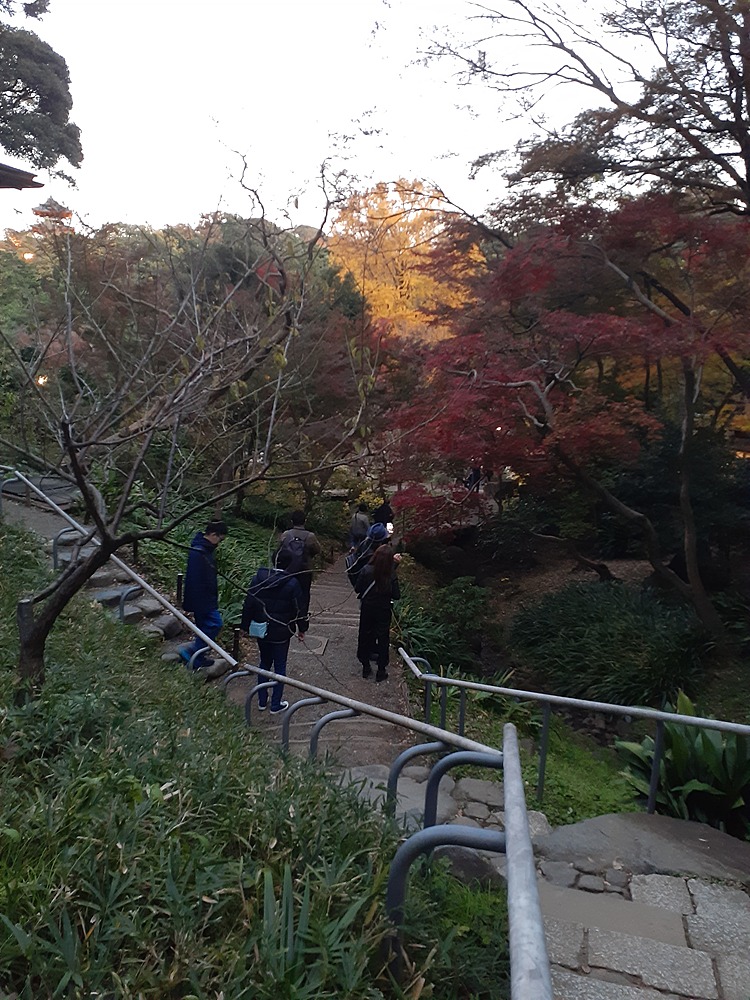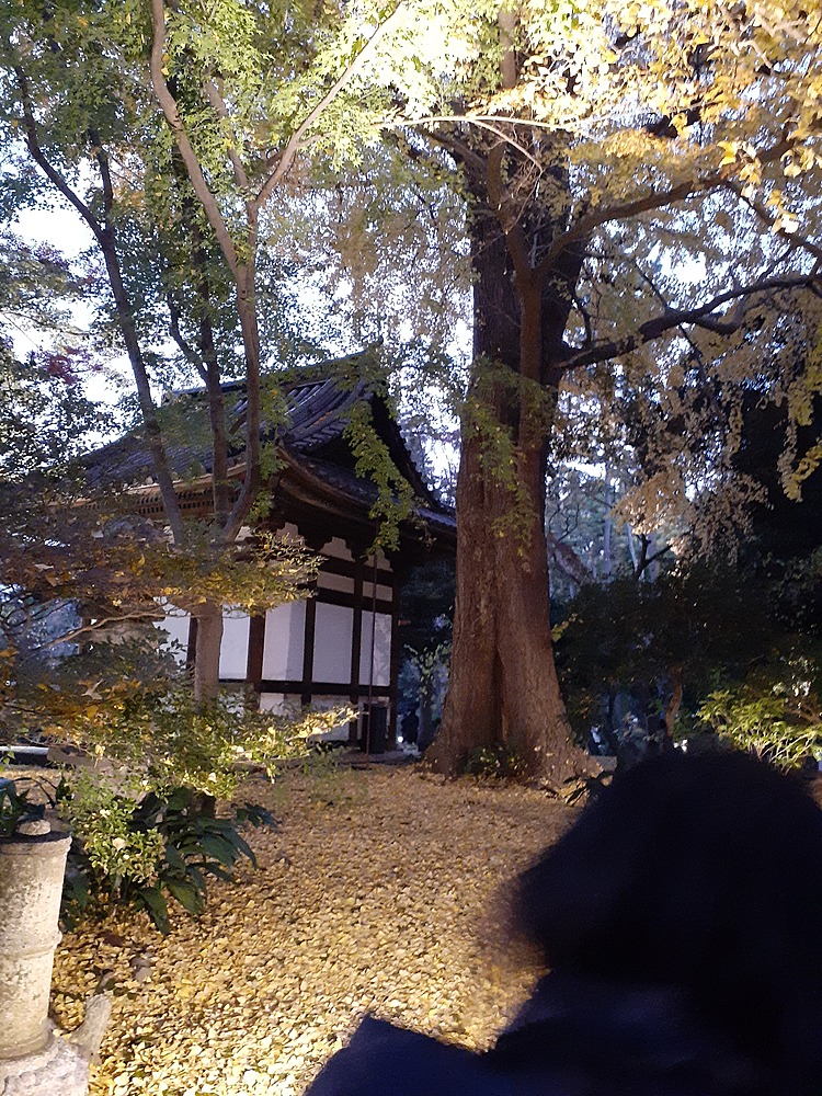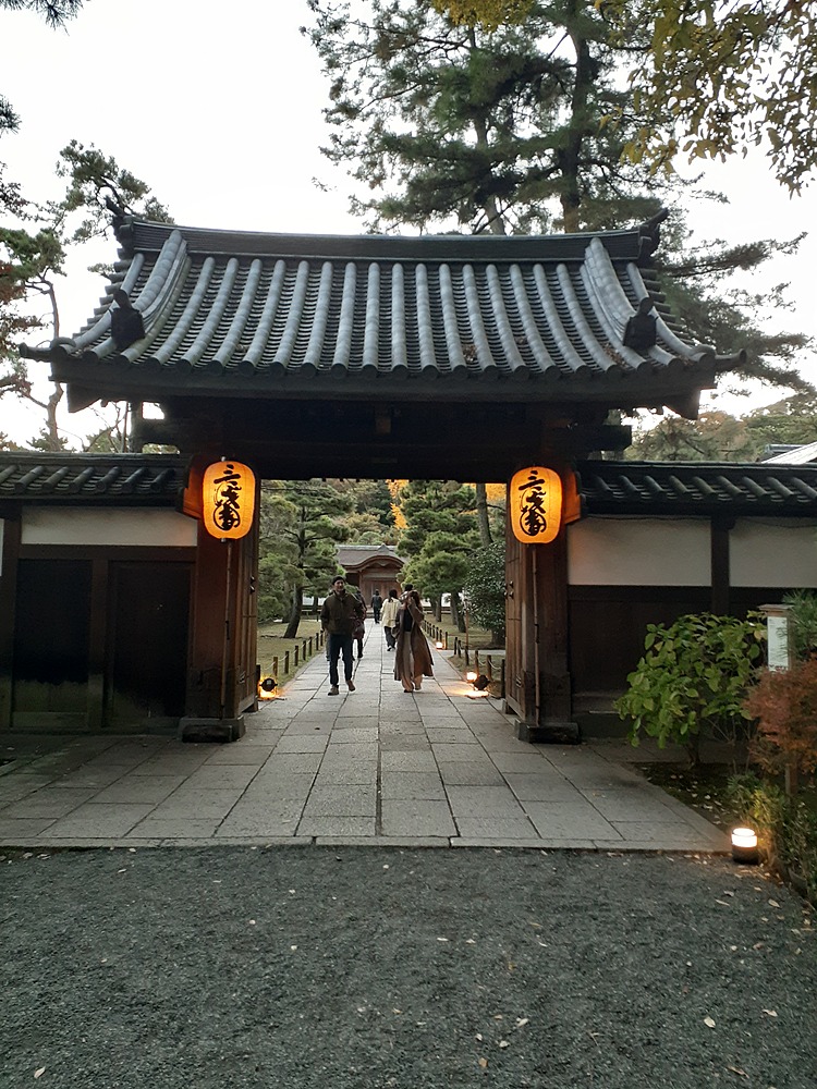 そろそろ日も暮れてきて、提灯にも明かりが、この御門を入って、紅葉の見映えスポットに進みます