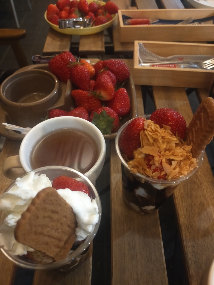 しかもパフェにできるので、生クリーム、チョコソース、キャメルソース練乳、コーンフレーク食べ放題♪