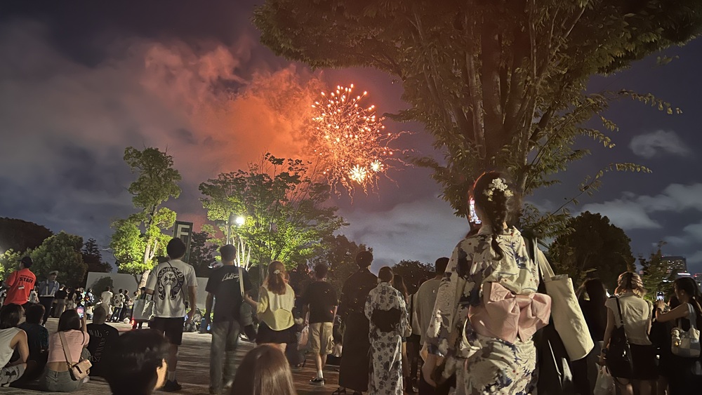 みんなでアメリカンフード食べて、盆踊り踊って、最後は花火。