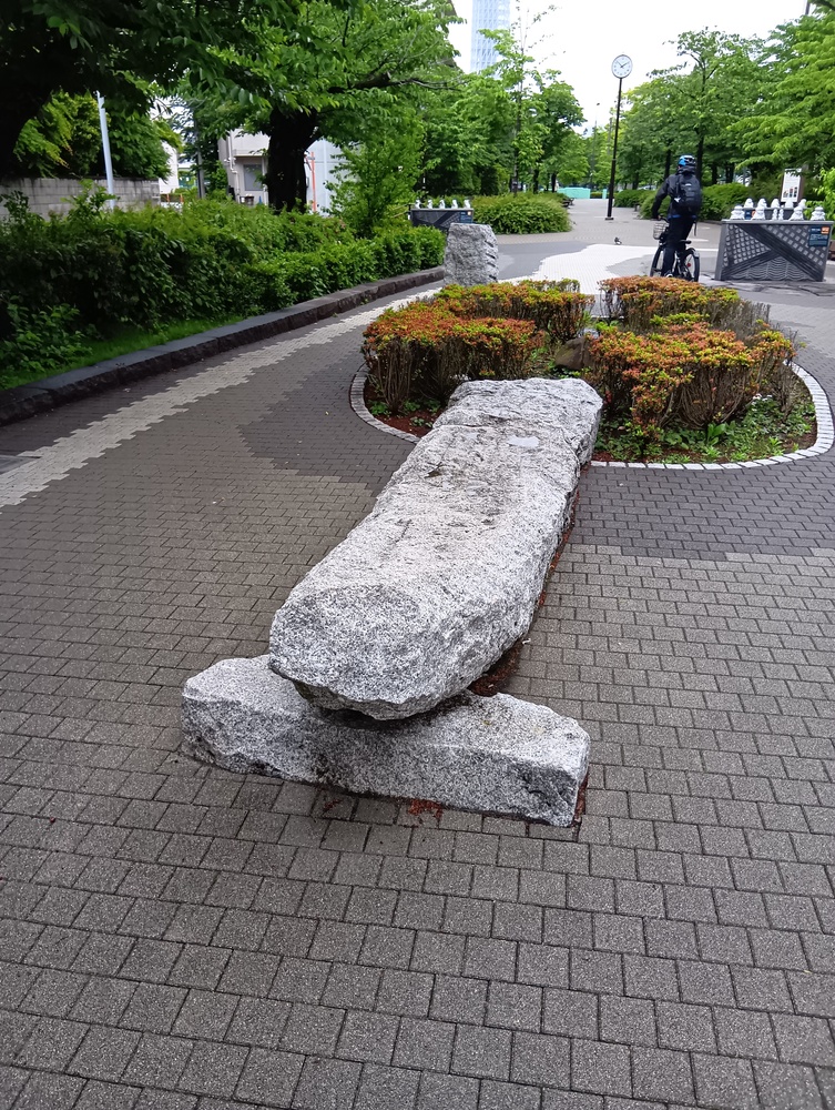 ↓はおそらく、江戸時代の猪牙舟を模した石?