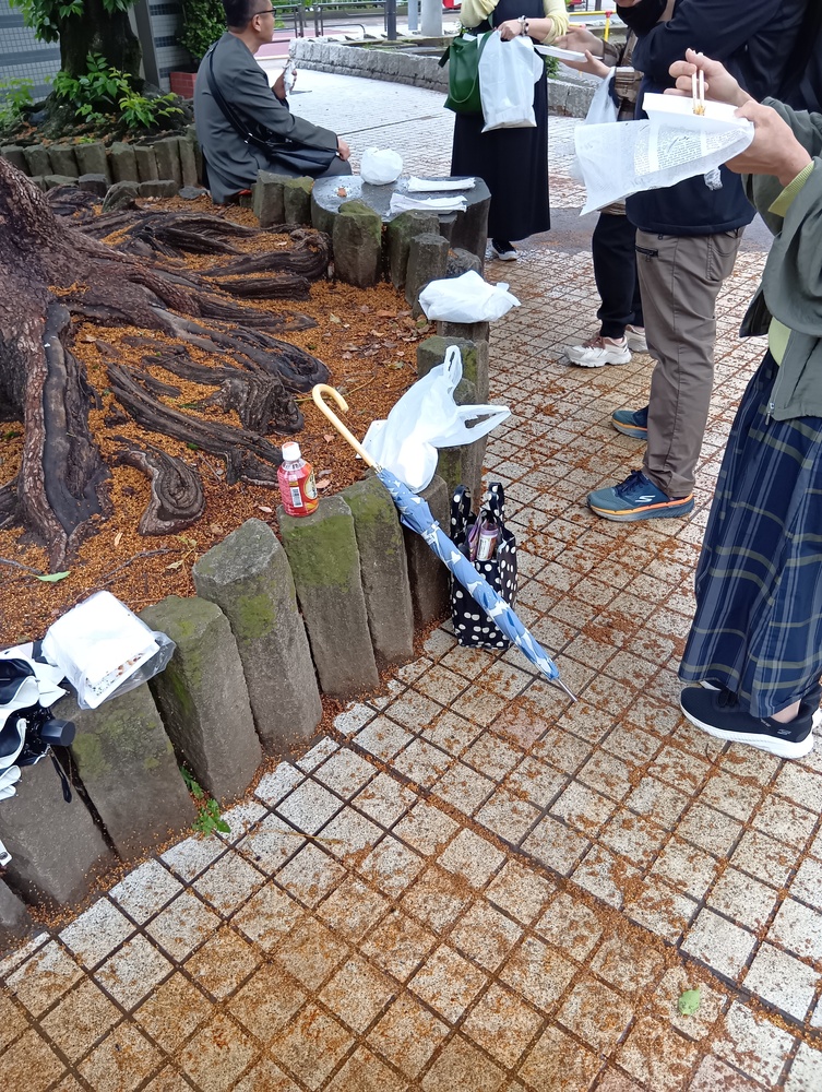 ↑各自、三島屋で購入後、公園で食べました。午前中が雨だったので、ベンチも少しひんやりしています。