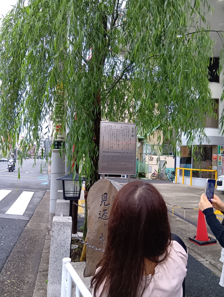 ↓見返り柳、吉原をあとにするお客が振り返るという有名な柳です🤔