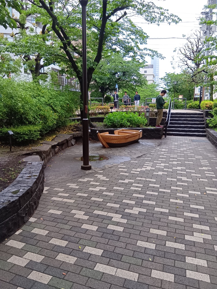 その下の茶色い舟は猪牙舟の一部のダミーです。