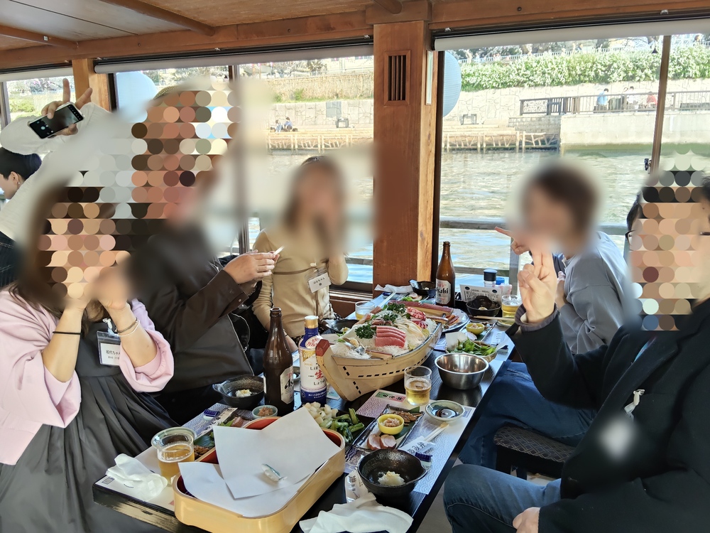 いつも送迎バスでお迎えお願いしてましたが、コースが隅田川なので乗船場集合!