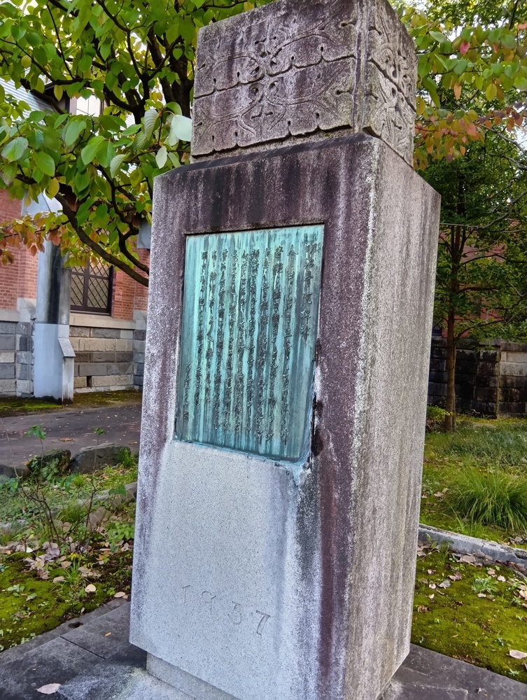 銅像は断われましたが、校歌碑の設置はりょうしたと言われます。