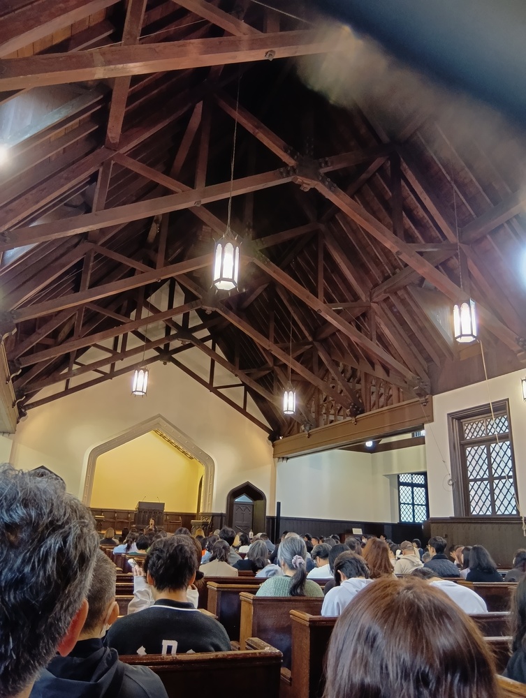 ちょうど学祭がやっていました。ちょうど、パイブオルガンの演奏中のため、チャペルへ