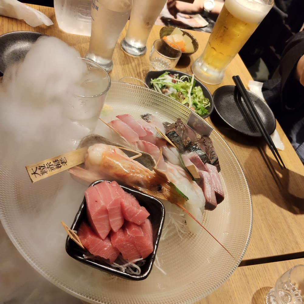 ドライアイスが溢れでるお刺身✨