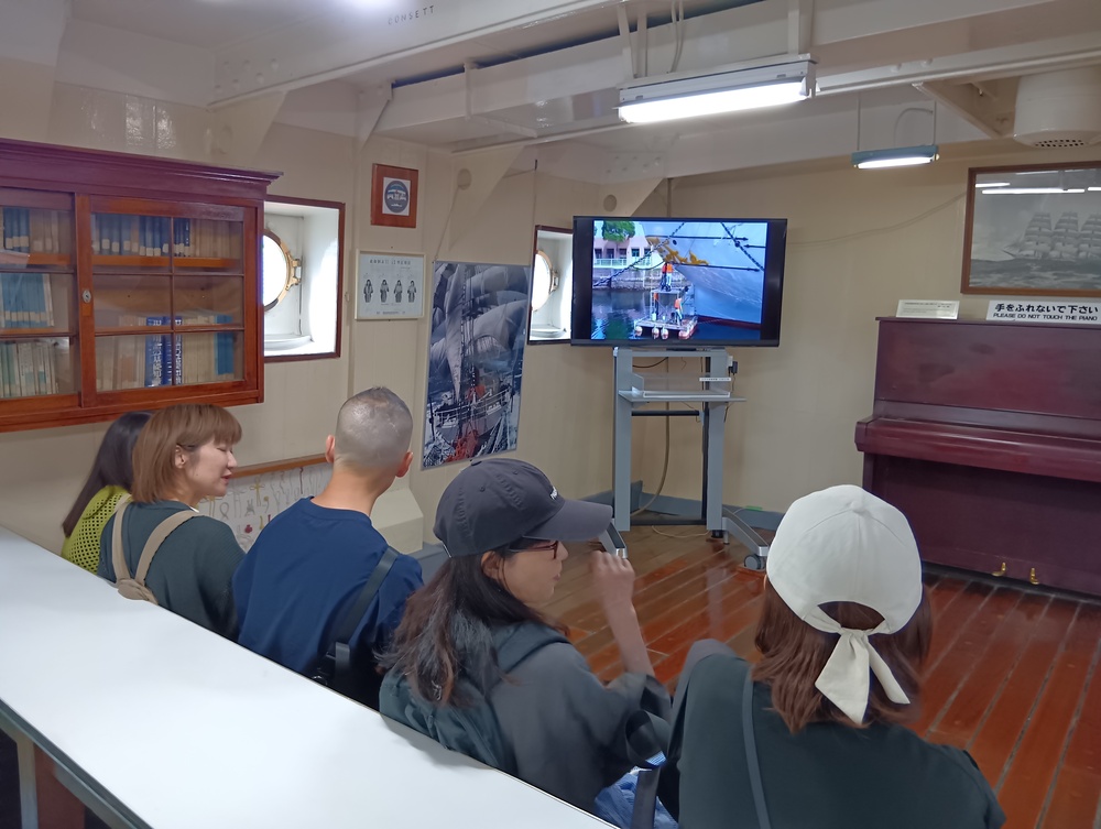 1.5時間博物館をみて、説明も一部して、隣の日本丸に行きます