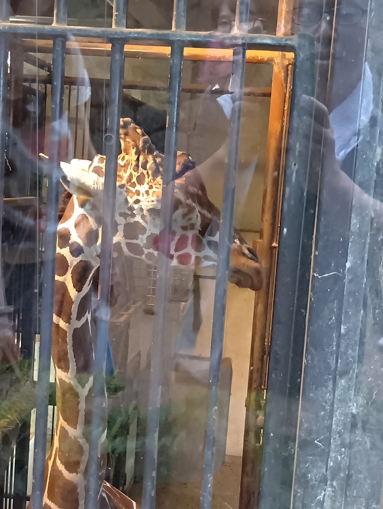 ↓ついに、キリン😀にたどり着きます。シマウマとキリンは交代交代で場所を変えているみたいで、今の時間は屋内にいました。