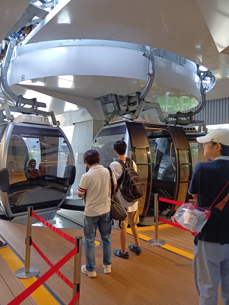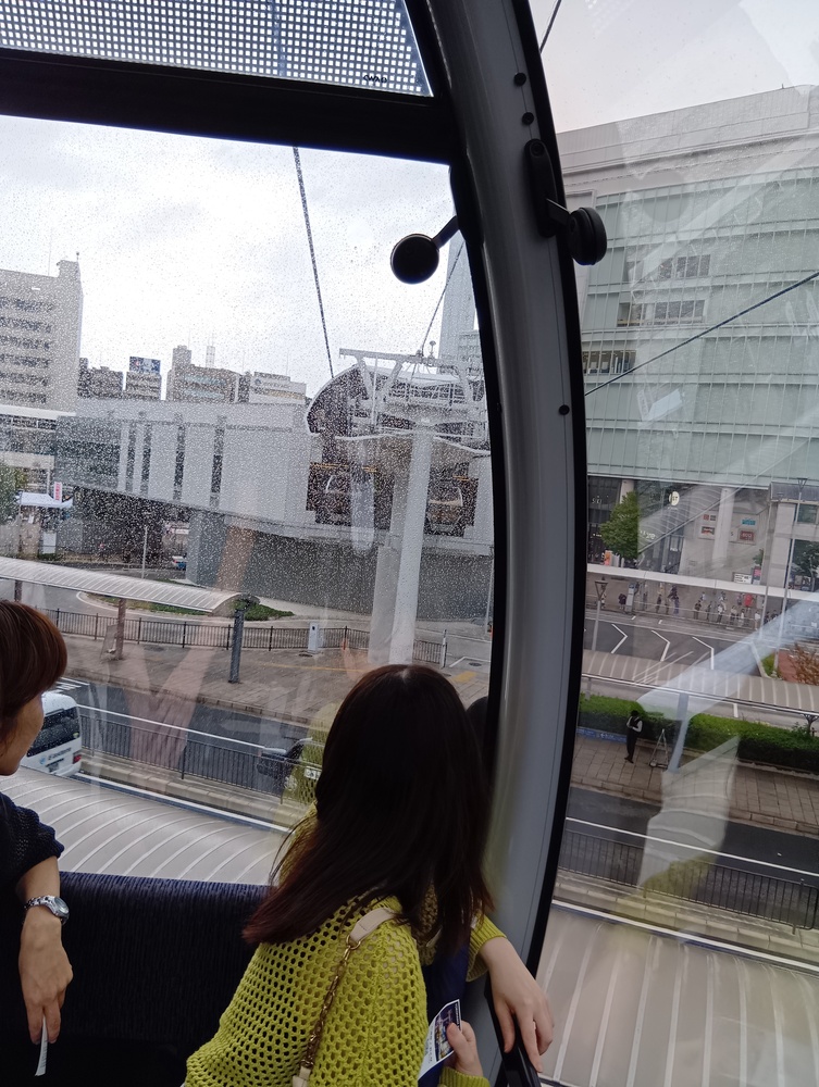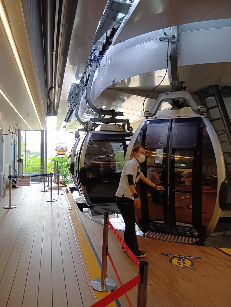 ↓汽車道を歩いた後、みなとみらいを上空から移動できる、エアーキャビンに乗ります。