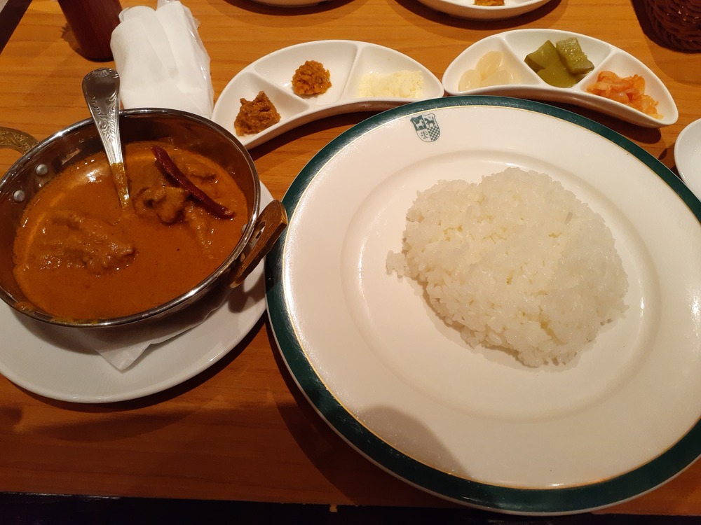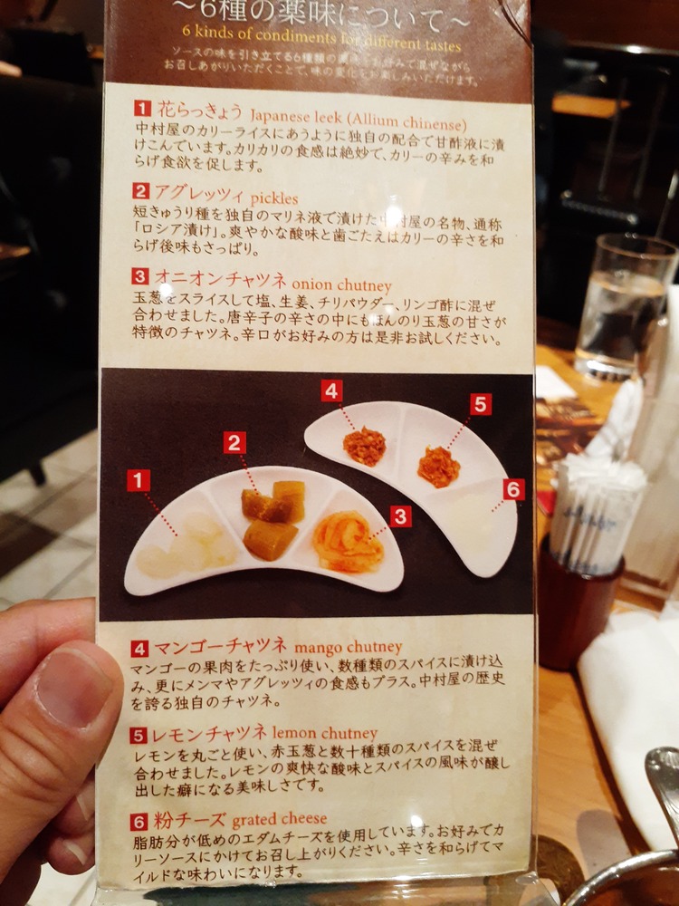 中村屋のカレー、まあまあ辛いこともあり、薬味をもらえるのが助かります。