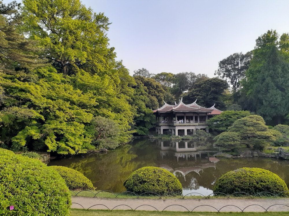 ↑台湾閣から見る景色は新宿御苑を違った気分にさせますね。