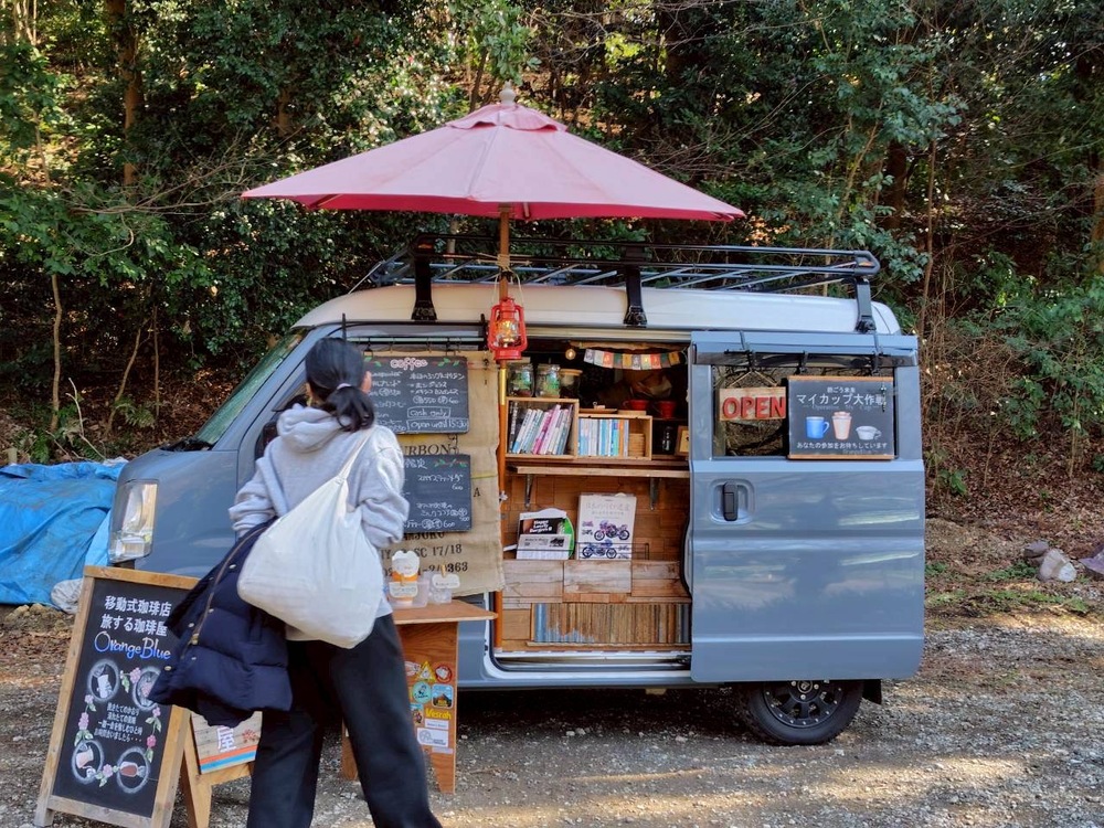 滑りきった先には、素敵な移動ワゴン「旅する珈琲屋」さんが。