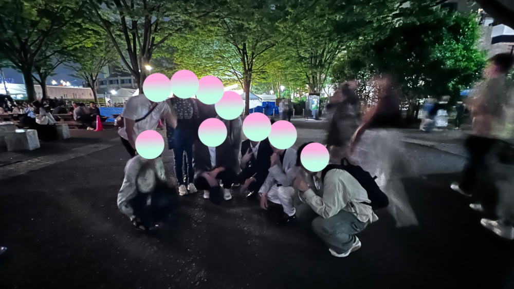 スマホの写真を見せてもらうと既に座っている集団。