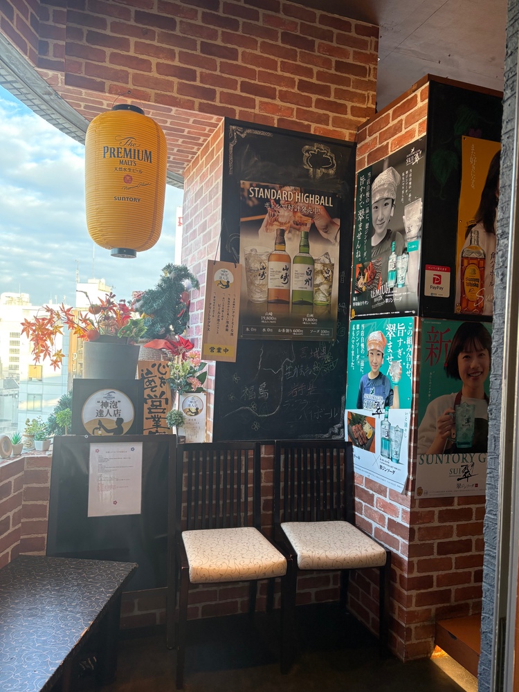 個室だけど、はみ出して座るみたいな笑