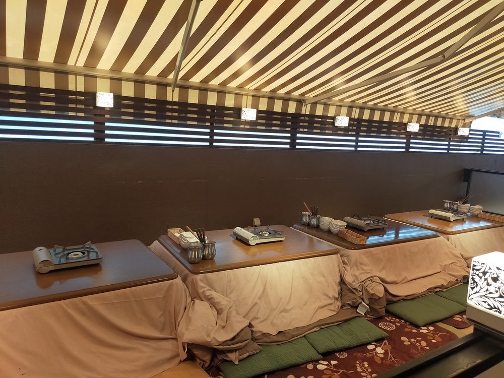 テラスにこたつということで、寒いのではと用心していきましたが、全然寒くなかったです。