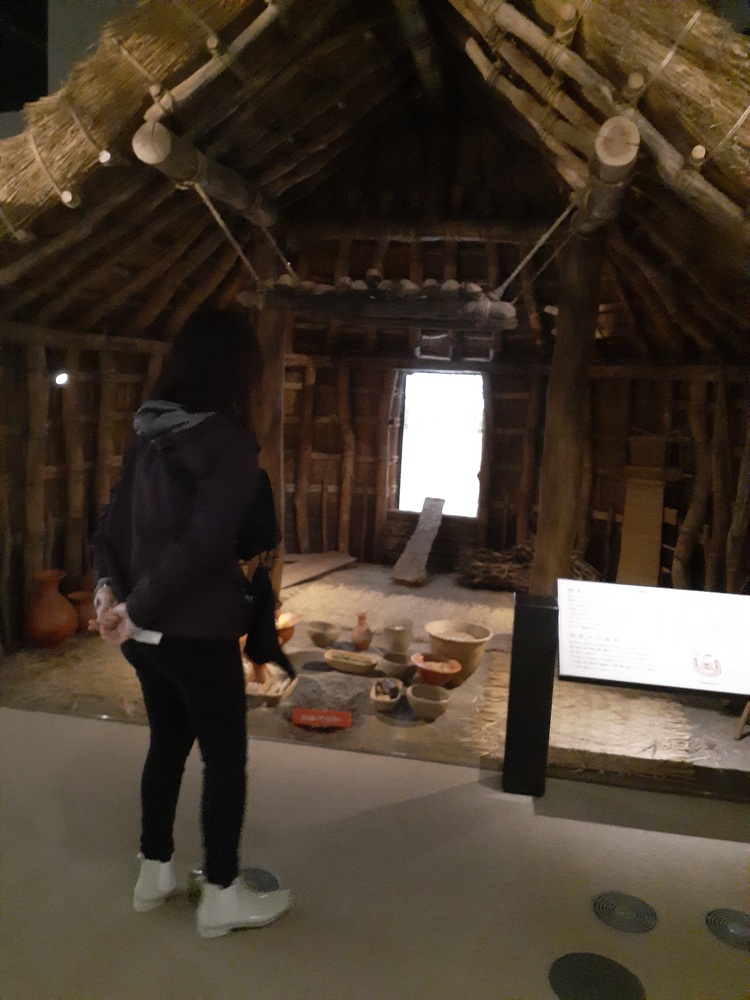 ↓博物館内の弥生人が住む住居です。