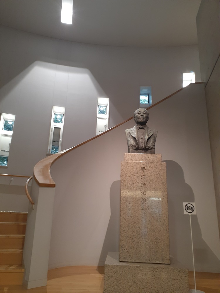 ↓入口には渋沢栄一像が出迎えてくれます。