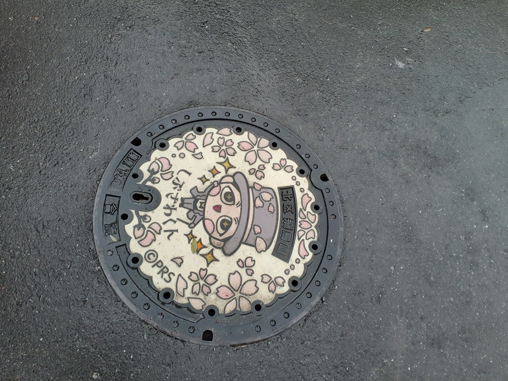 ↓飛鳥山ふもとには、しぶさわくんのマンホールがありました