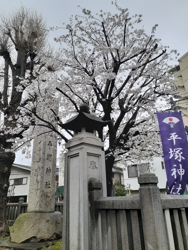 ↓写真は平塚神社の参道入口です。桜がこれだけ咲いているのは今だけの景色でしょう。