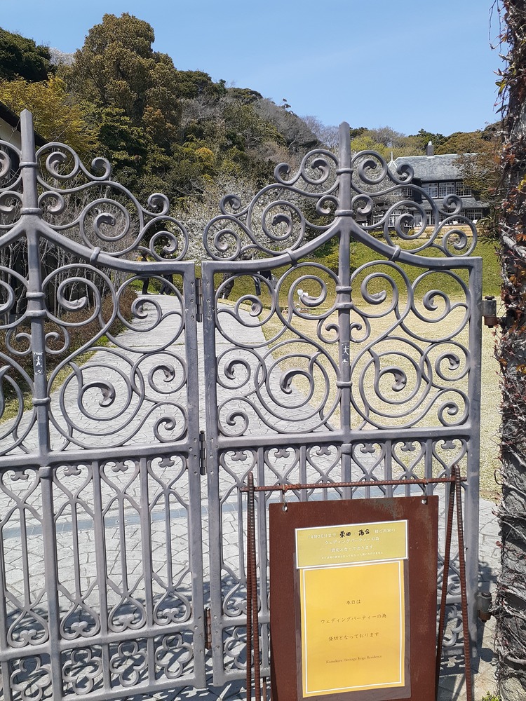 ↓その途中で見える鎌倉三大洋館の一つ、「古我邸」を入口から見ました。現在はフランス料理店です。