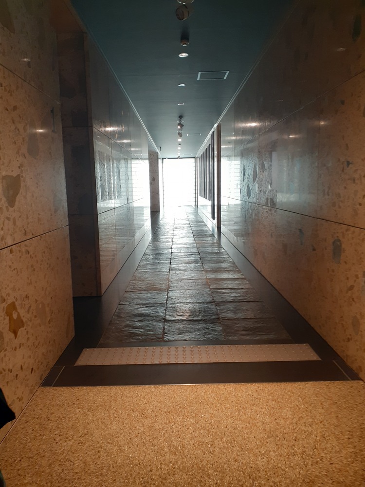 ↓画像は博物館の通路、暗いような通路ですが、奥に行って曲がると明るい光が差し込むおしゃれな建物です