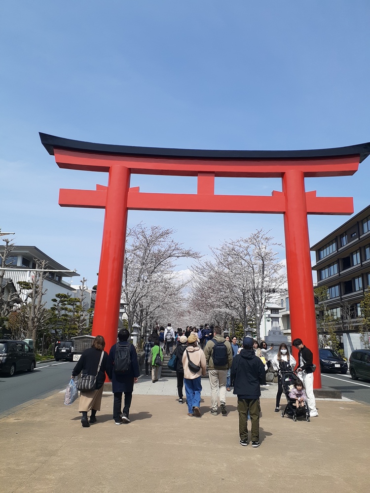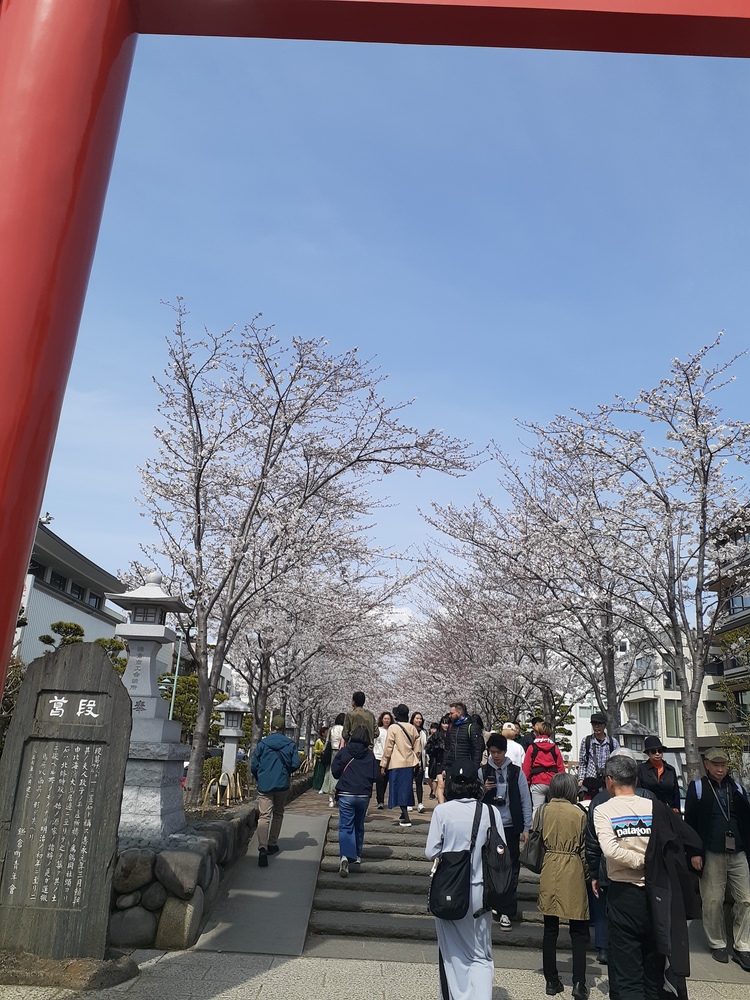 桜のトンネルを通った後、鶴ケ岡八幡宮の境内へ