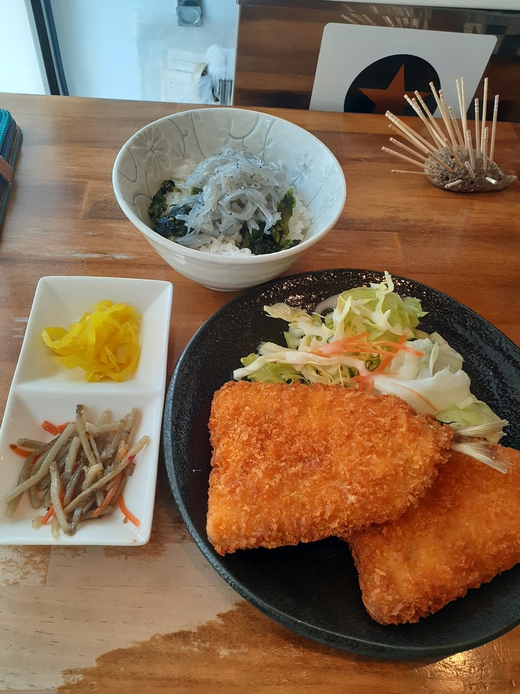 ↓画像はアジフライと生しらす丼です。何度か来ていますが、一番おすすめです。