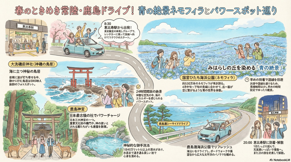 春の鹿島ドライブ!青の絶景ネモフィラ ひたち海浜公園・磯前神社・鹿島神宮・香取神宮