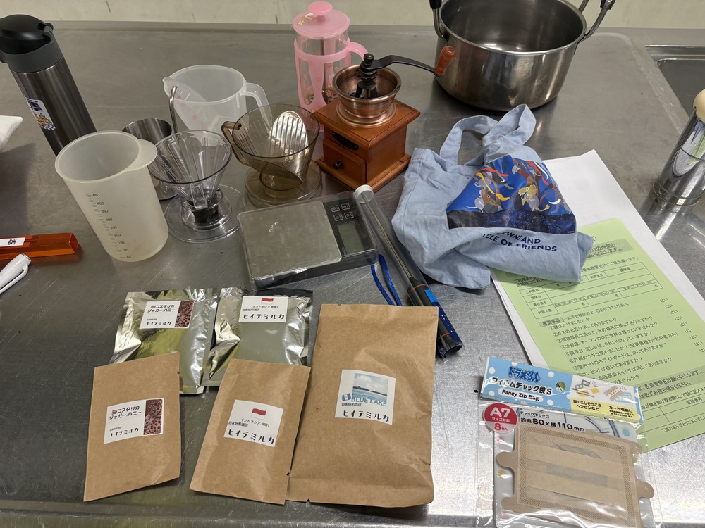 コーヒーや器具は幹事が事前準備します。