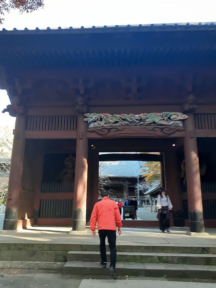 ③妙本寺(門の前でこの土地の歴史を説明。少し怖い鎌倉時代のお話でした。知られざる日蓮宗の大きなお寺です。紅葉は階段を上りながら、振り返りながら見る風景が印象的です)