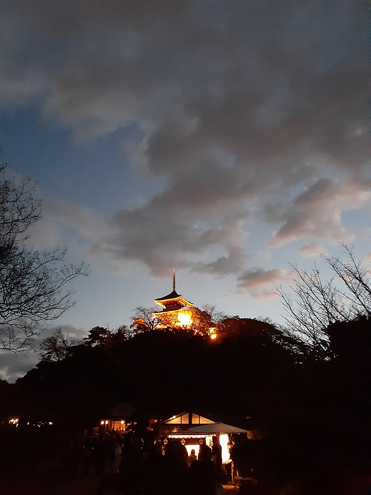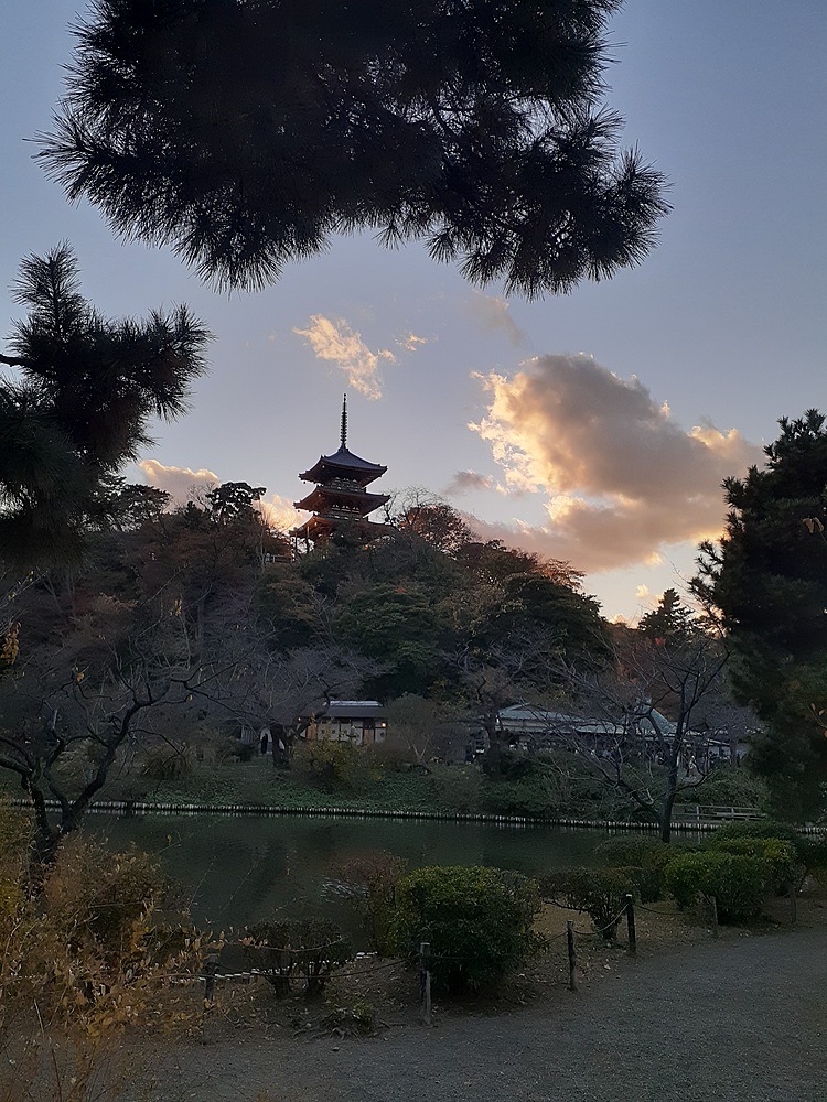 最後に、三渓園のランドマークである、三重塔の日が暮れる前と後の写真を。夕方では30分程度でこうなります