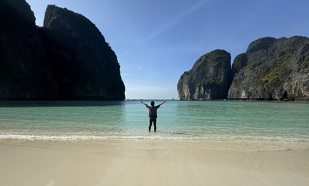 写真上は 映画「ザ・ビーチ」の舞台、ピピレイ島 マヤ湾にて。