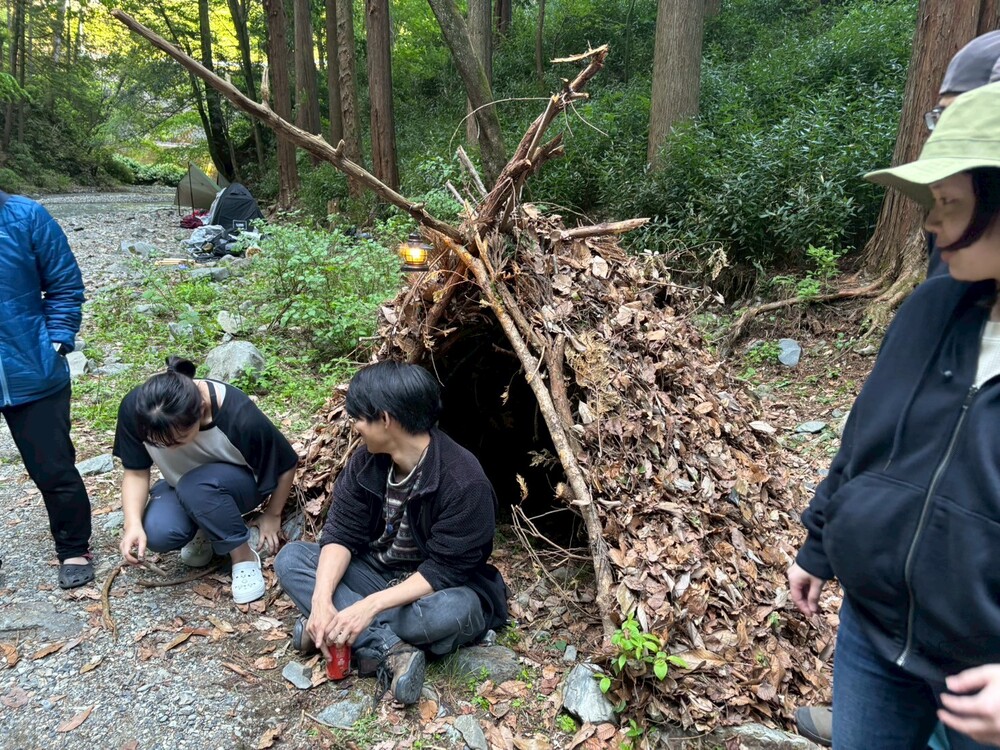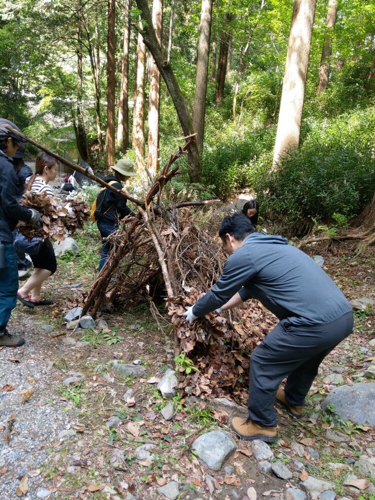 1日目のメインはデブリハットづくり。火を囲んでの交流。