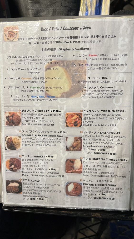 初めてのアフリカ料理。昔エジプトに行ったときに食べたものと、先日行ったトルコ・イラン料理と似たようなものが出てくるかと思ったけれども実際は見た目が普通のフライドポテトなどをまず注文
