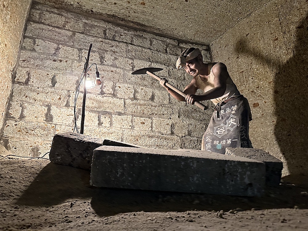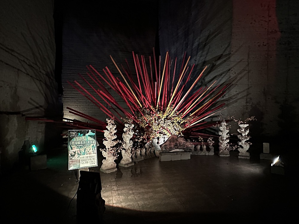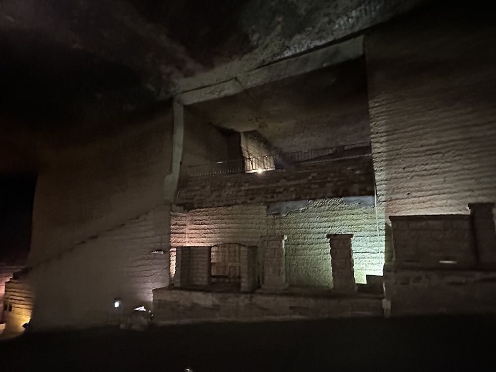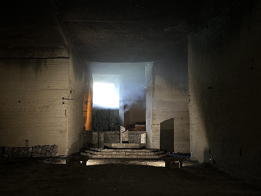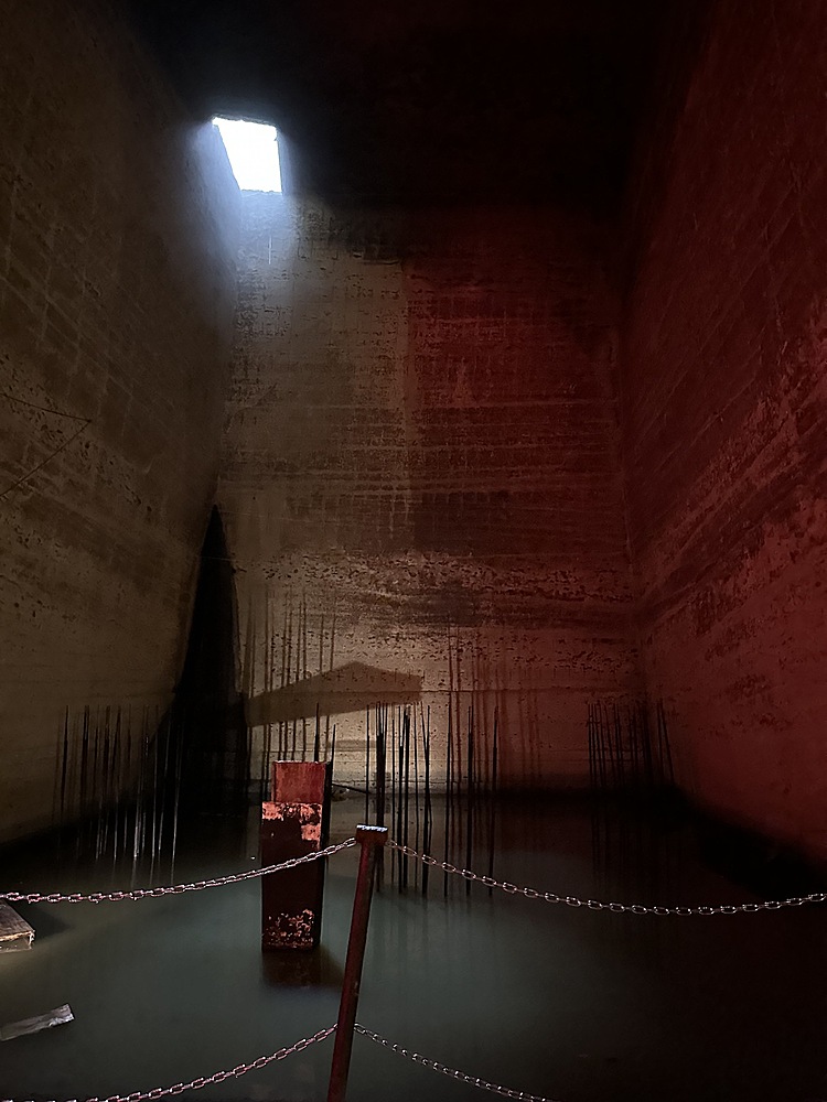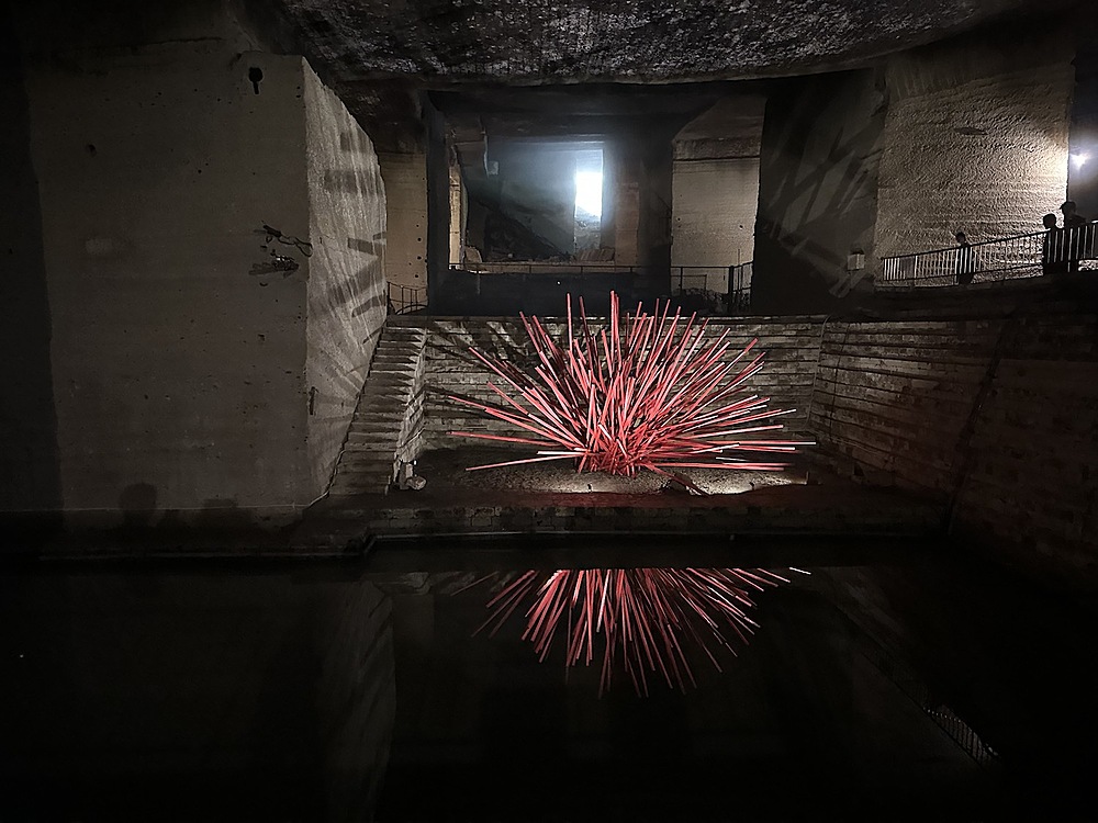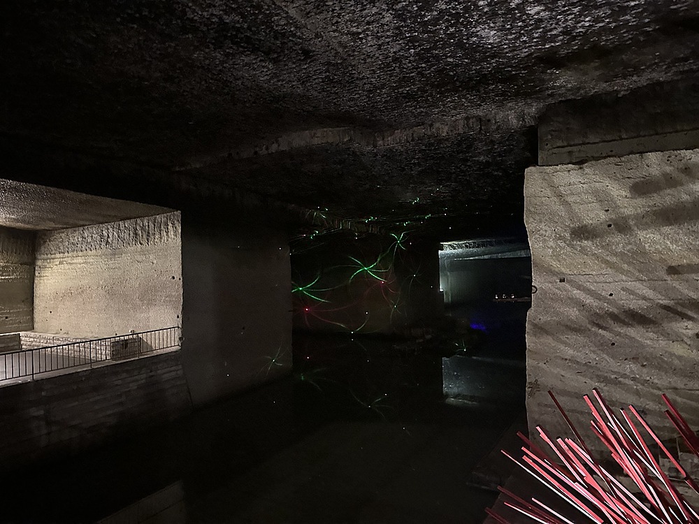 館内は当日は14度。冬は1度まで下がるようでひんやりしていました。人力で採掘する蝋人形が出てきたので、教育用の展示がされていると思いきや、広大な地下空間はほとんどがアート空間として利用されていました。ところどころでドラマやアーティストが利用したというふだがかけられていました。横穴(歩けない)は軍事施設として利用されていたということでした。