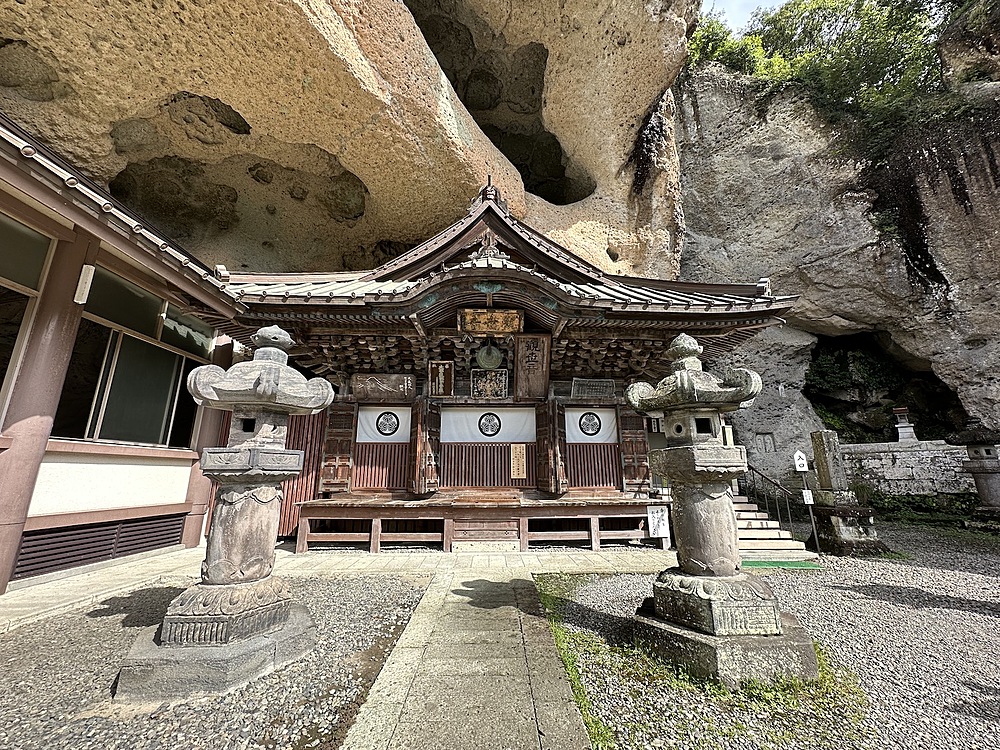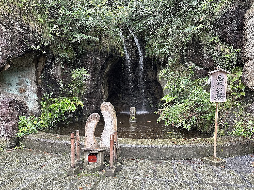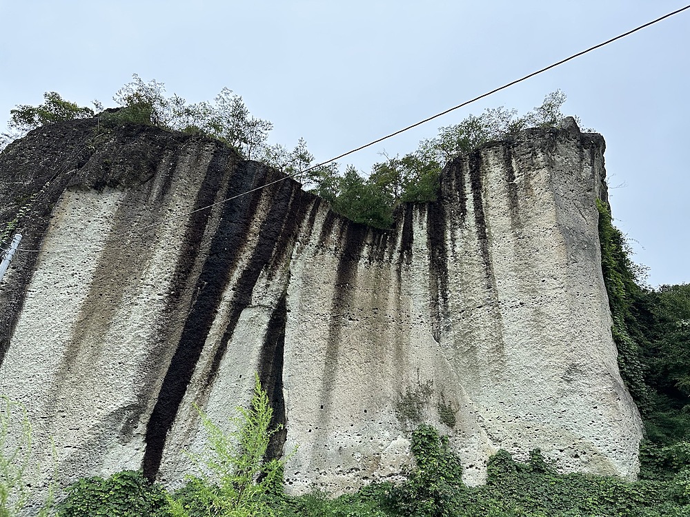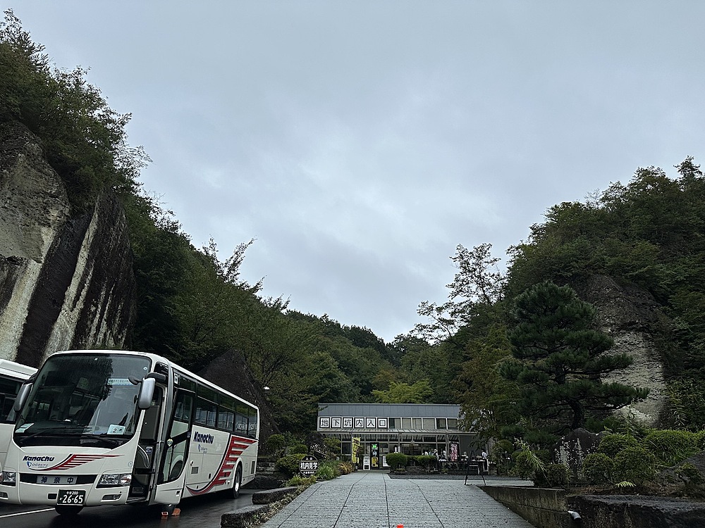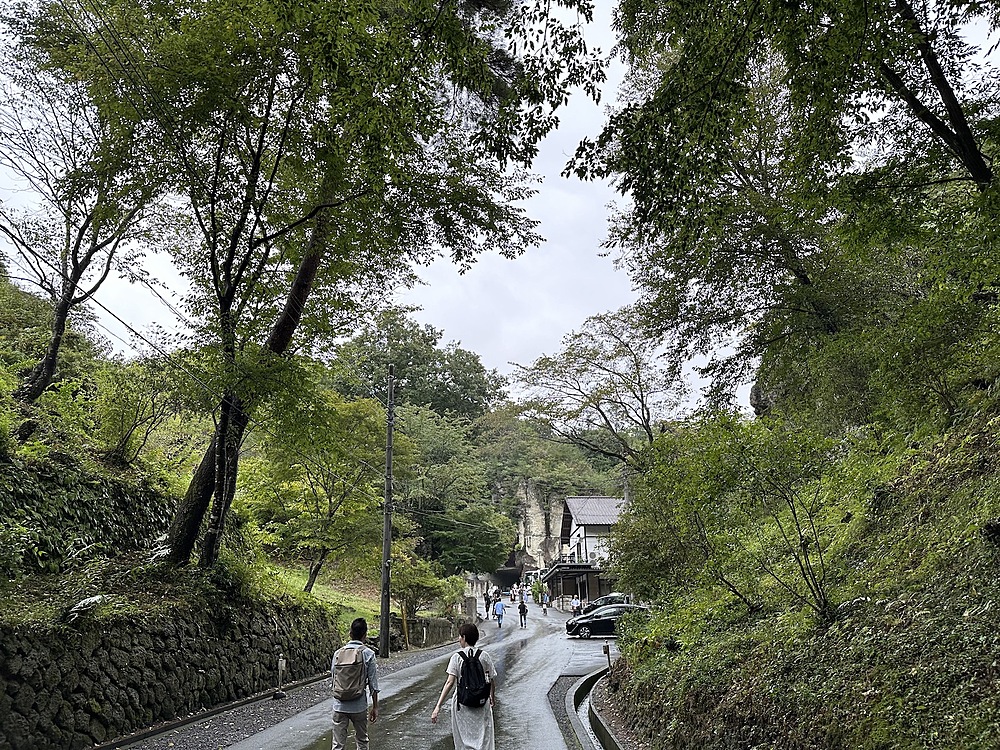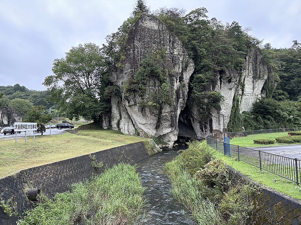 バス停で降りると、露出した岩がぼこぼこ出てきます。この光景の中を歩いて大谷資料館に向かいます。曇っていて涼しいくらいでした。なぜ愛の泉?と思いましたが、この後も不思議なセンスに驚かされることになります。資料館には大谷翔平の写真が理由なく飾ってありました。